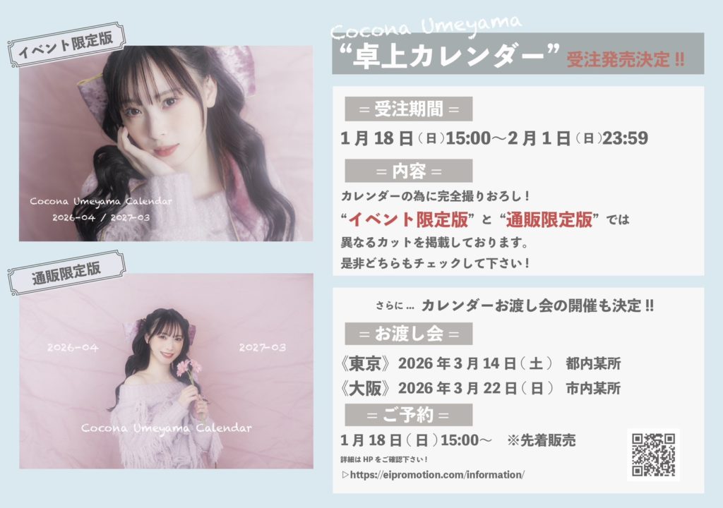 ※卓上カレンダーと特典はお渡し会当日にお渡しいたします。